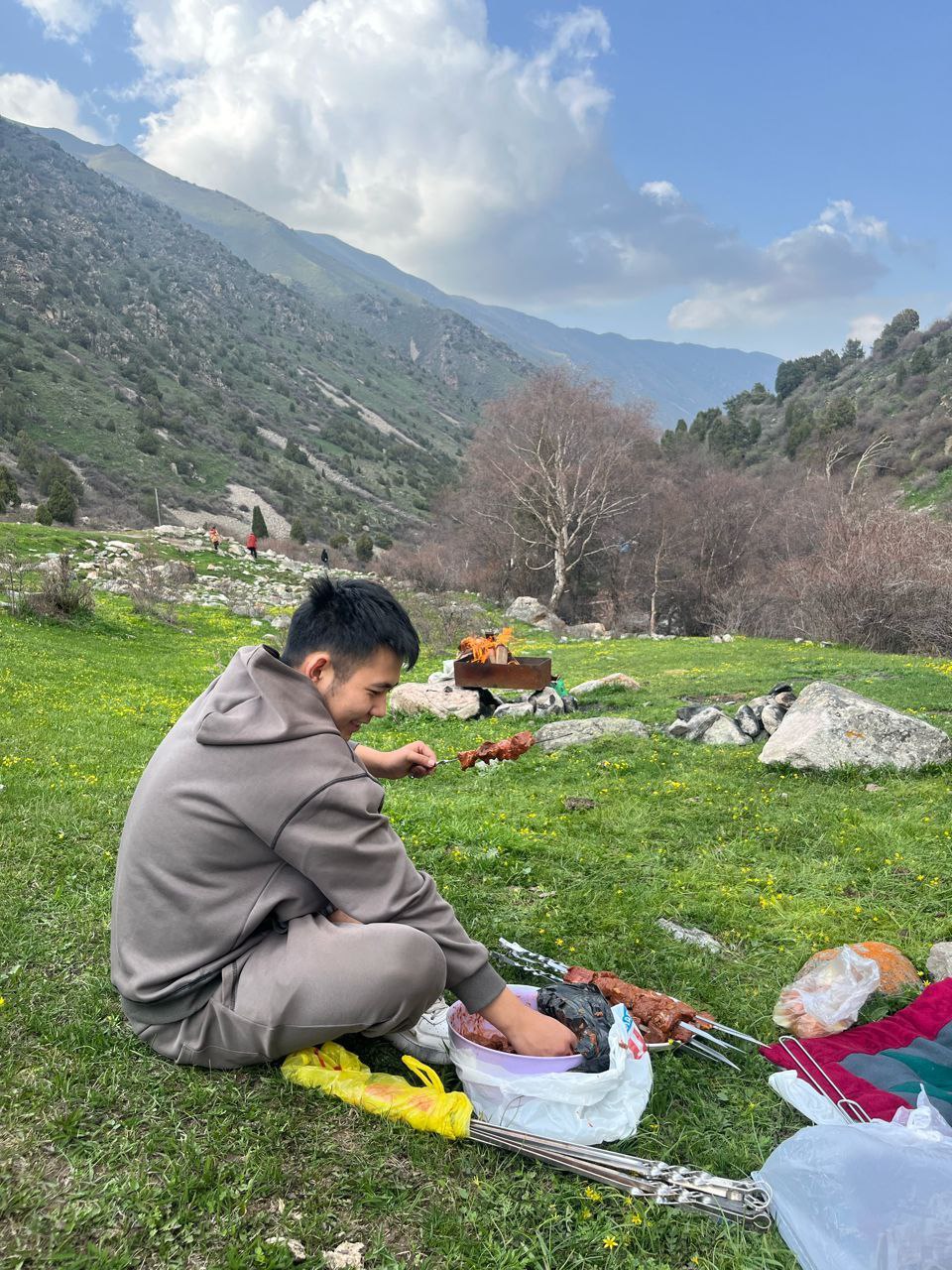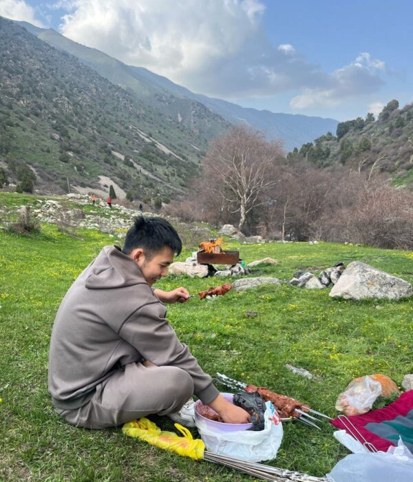 Полный релакс: Обед-пикник на берегу шумной горной реки Аламедин — это высший кайф и полное единение с природой.