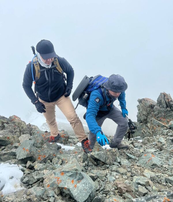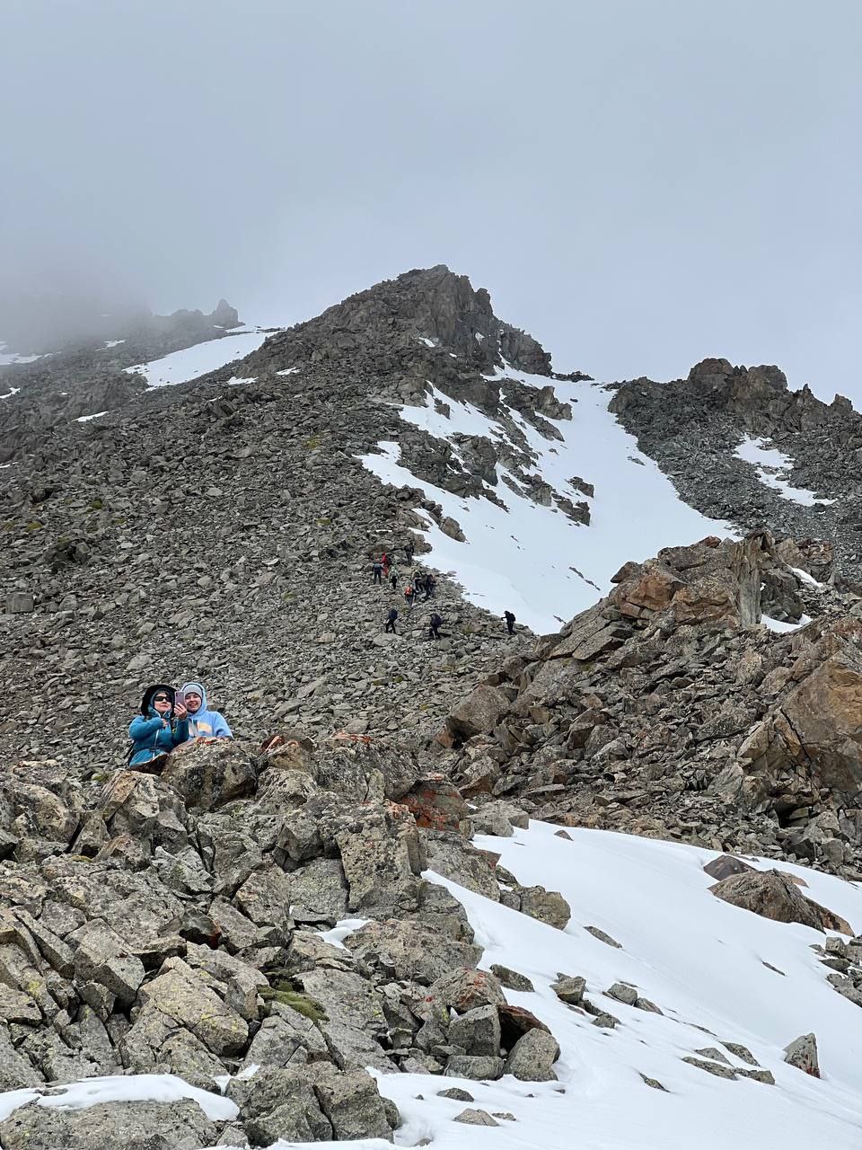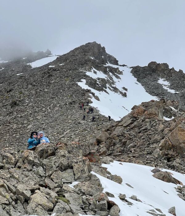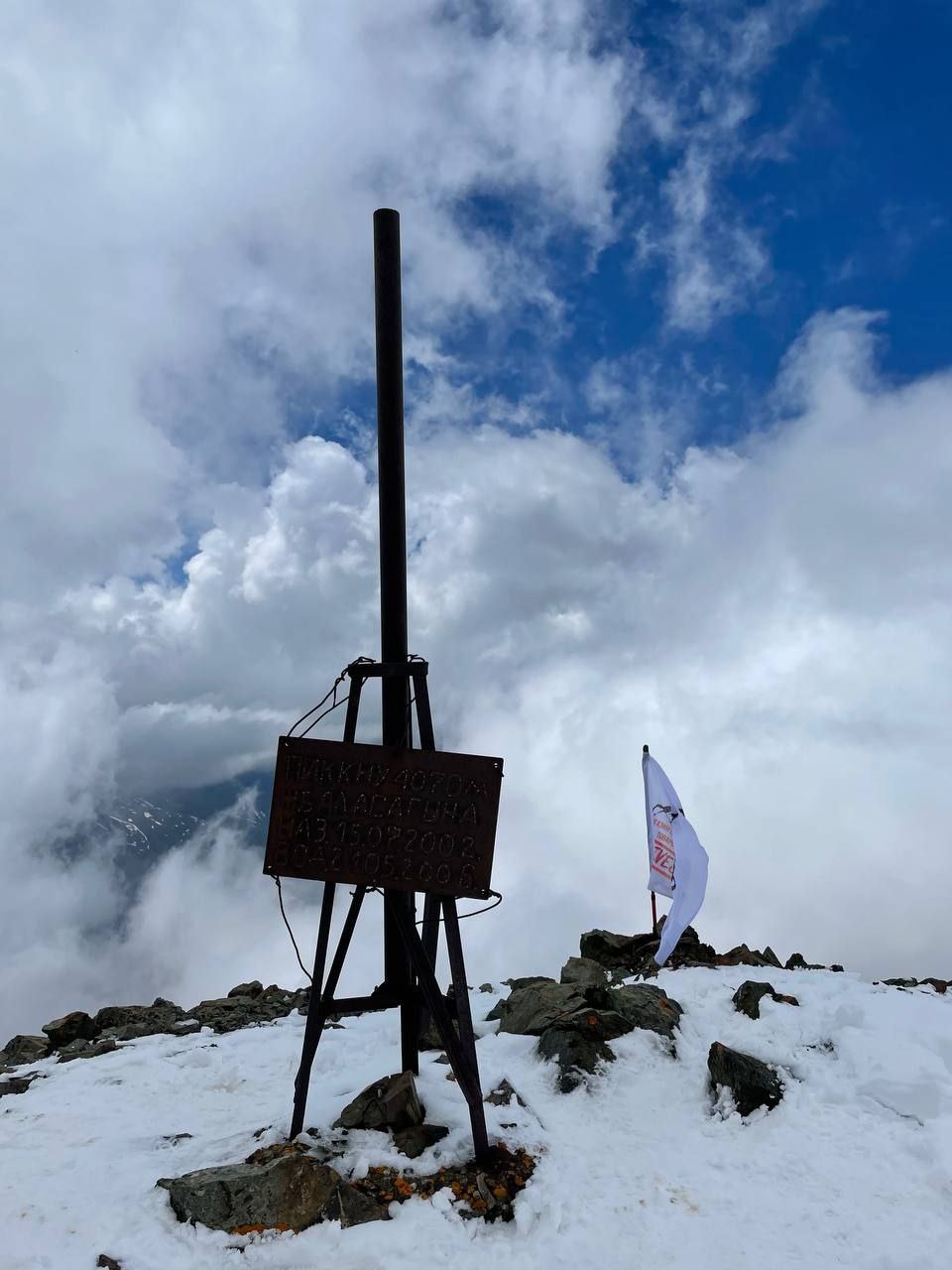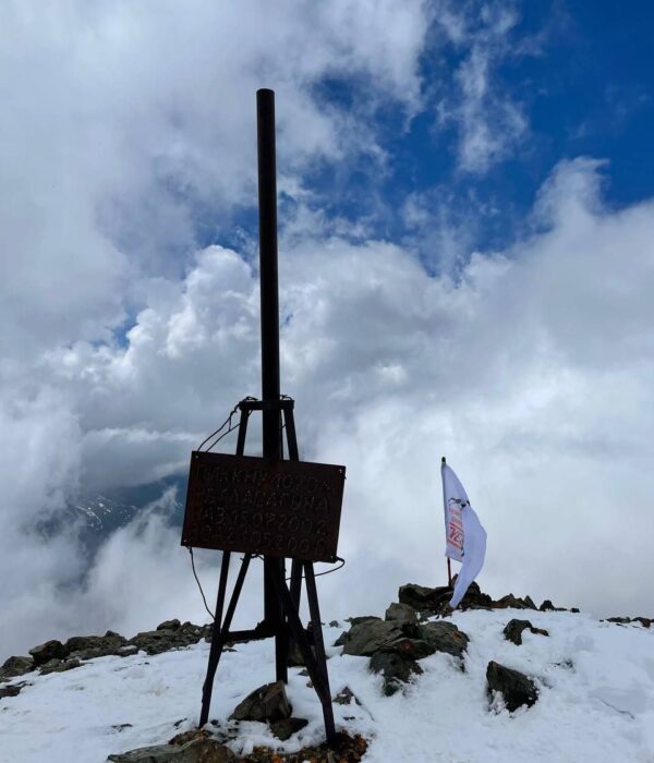 13:00 – 13:30 — ВЕРШИНА! Пик КНУ (4060 м). Время для той самой «божественной эйфории», фото с табличкой и осмотра панорамы ледников Ала-Арчи.