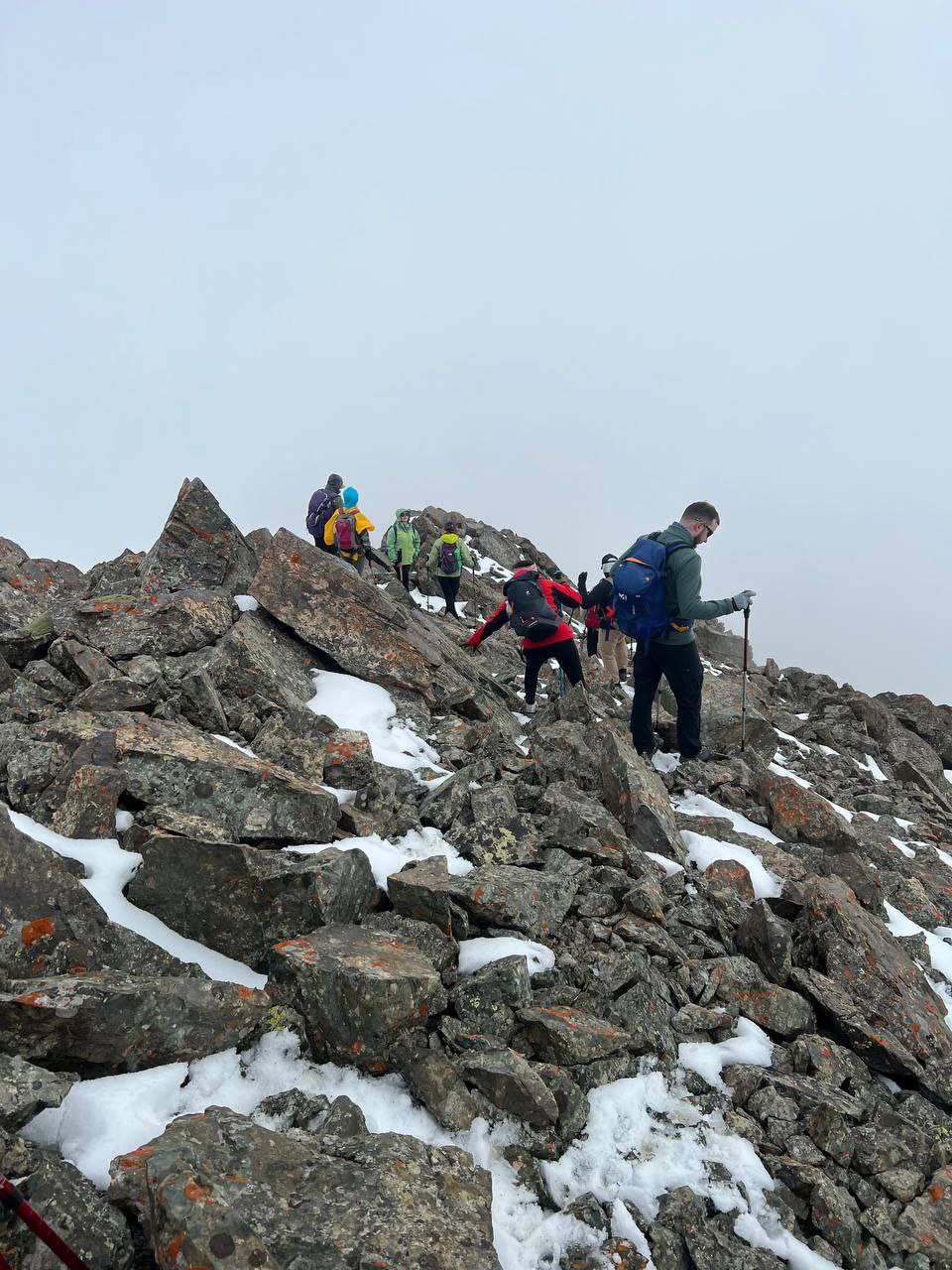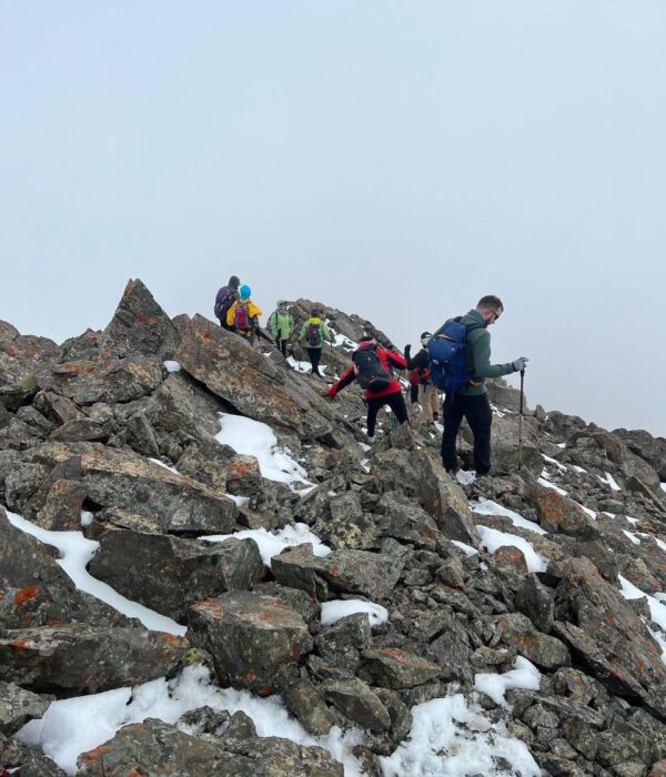 08:00 – 11:30 — Прохождение каменисто-осыпных склонов. Переход к технически сложным участкам (скальные гребни 2А).