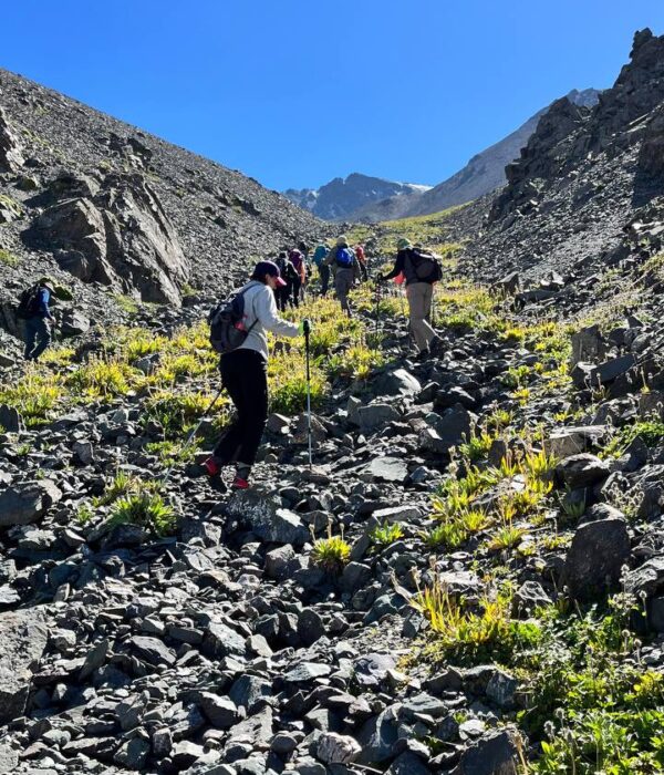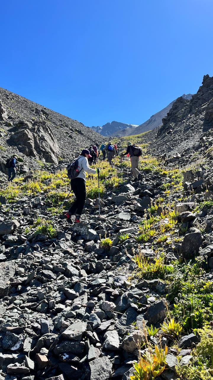 16:30 – 18:30 — Спуск к альплагерю (стоянка транспорта). Ноги будут гудеть, но сердце — петь!