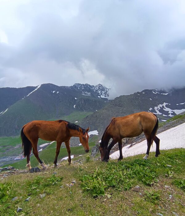 Наш маршрут проходит по тропе Кожомкула. По легенде, именно здесь великий кыргызский богатырь, демонстрируя невероятную силу, пронес своего коня на плечах, чтобы спасти его на сложном перевале.